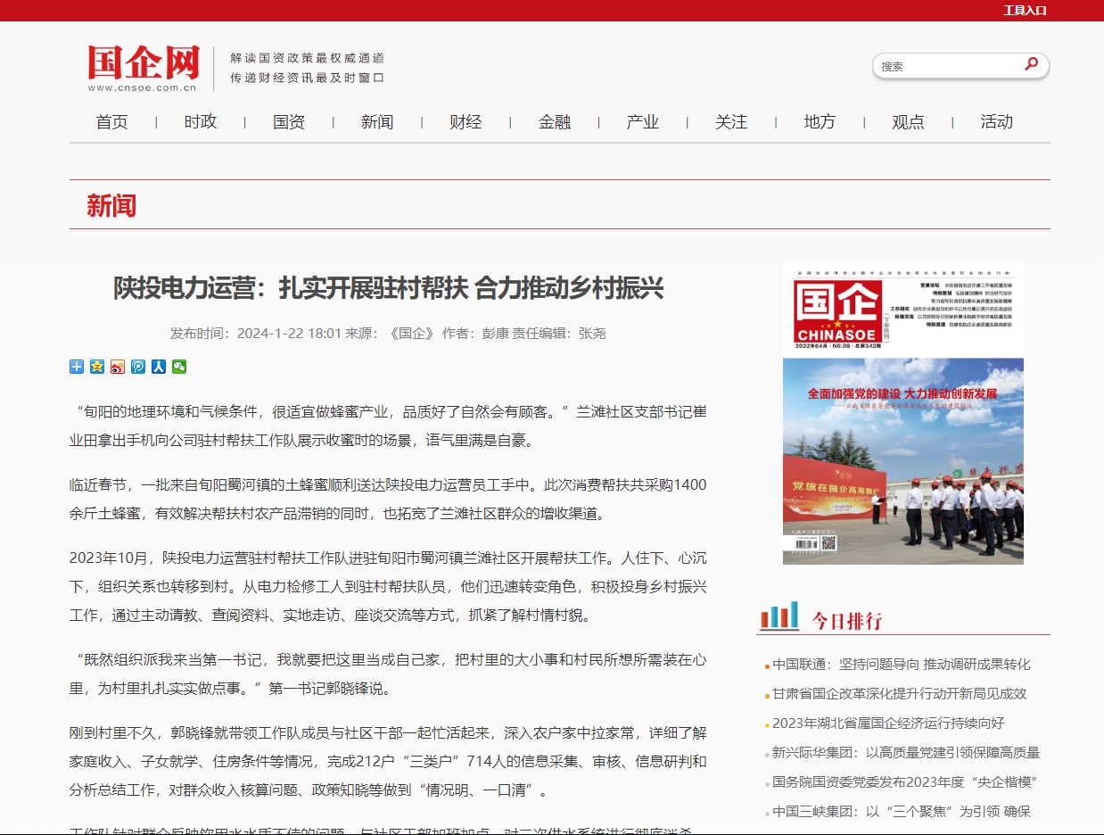 2023年10月,陕投电力运营驻村帮扶工����� �������Ƴ������������ �������Ƴ������������ �������Ƴ������������ �������Ƴ������作队进驻旬阳市蜀河镇兰滩社区开展帮扶工作。人����� �������Ƴ������������ �������Ƴ������������ �������Ƴ������������ �������Ƴ�������住下、心沉下,组织关系也����� �������Ƴ������������ �������Ƴ������������ �������Ƴ������������ �������Ƴ������转移到村。从电力检修工人到驻村帮扶队员,他们迅速����� �������Ƴ����������� �������Ƴ������������ �������Ƴ������������ �������Ƴ�������转变角色,积极投身乡村振兴工作,通过主动请教、查����� �������Ƴ������������ �������Ƴ����������� �������Ƴ������������ �������Ƴ�������阅资料、实地走访、座谈交流等方式,抓紧了解村����� �������Ƴ������������ �������Ƴ������������ �������Ƴ������������ �������Ƴ�������情村貌。
